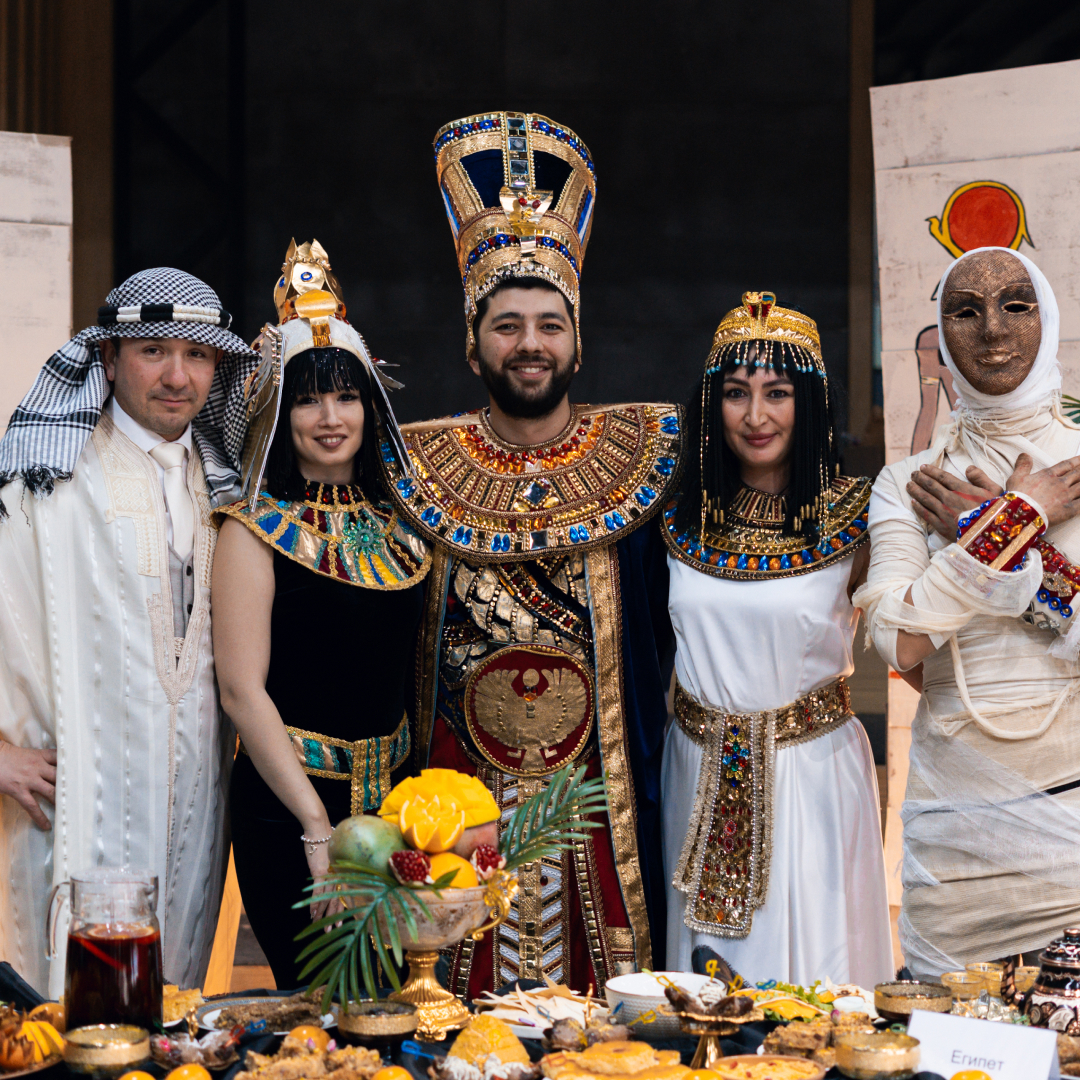 В конкурсе участвовали 28 команд, и каждой досталась своя страна. Команда ITPU представляла Египет — мы подготовили блюда национальной кухни и оформили зону в египетском стиле, полностью передав атмосферу региона.
